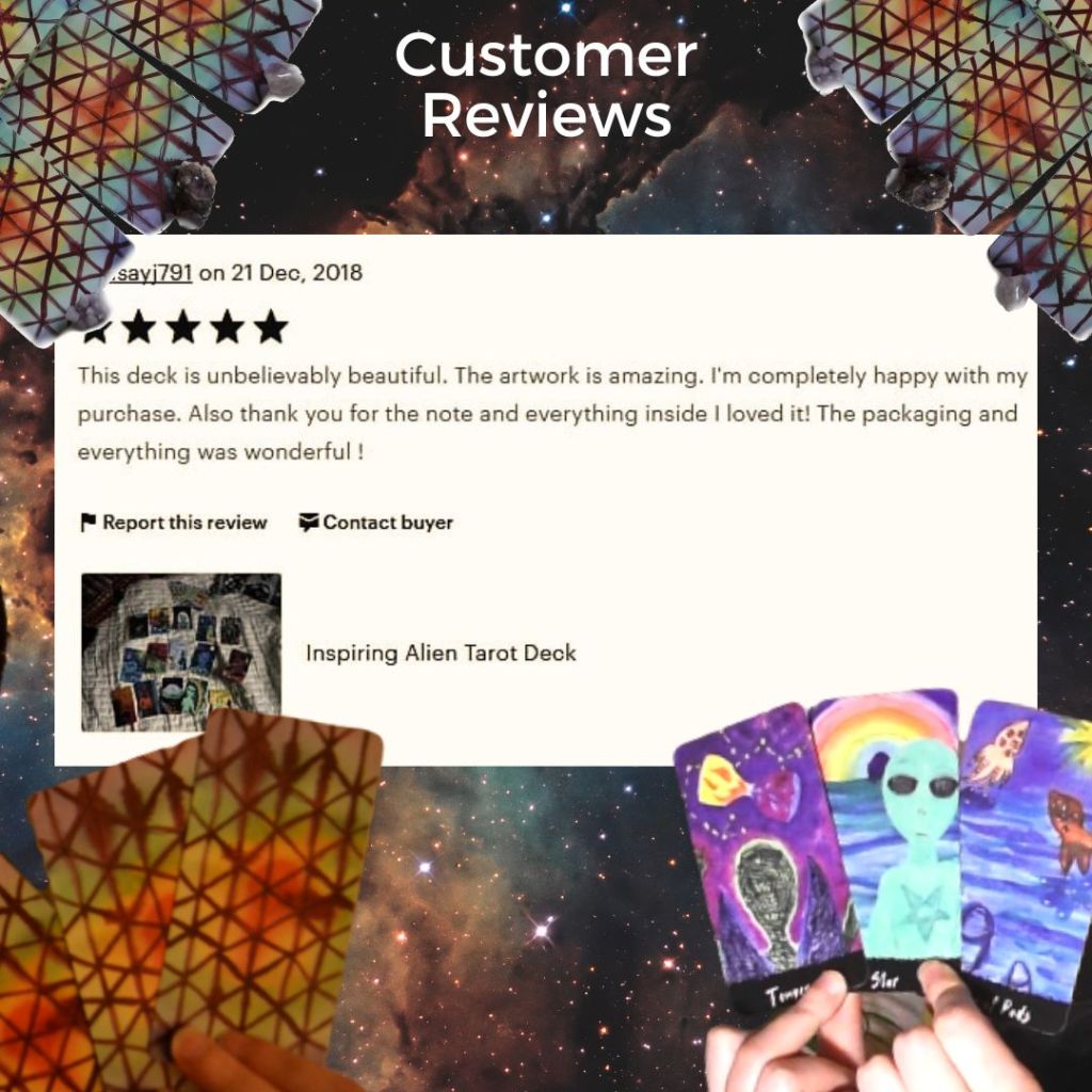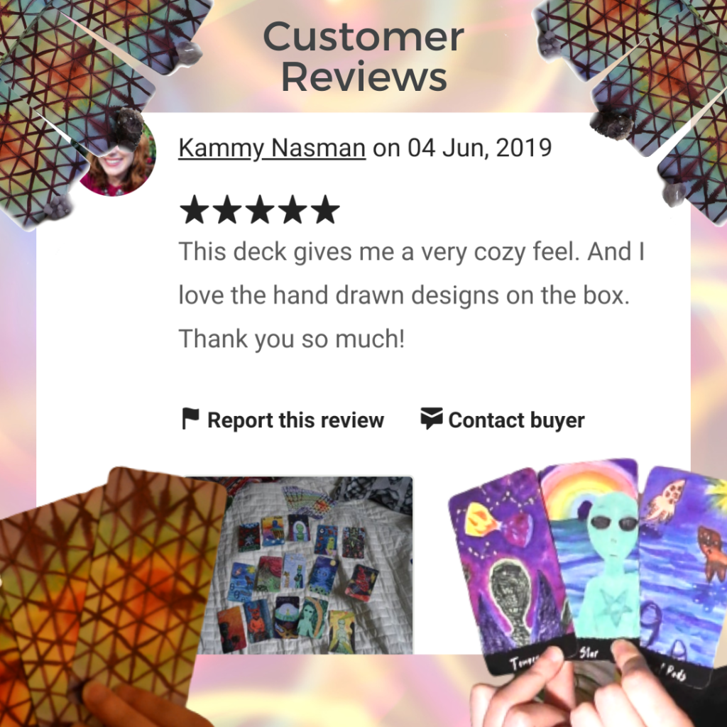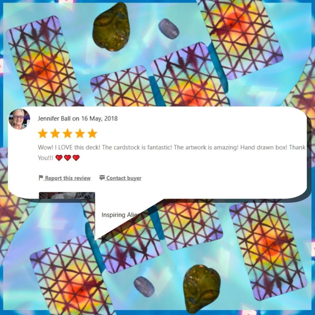 With great gratitude and honor towards each person who ever received one of these spaceships, as I liked to call them, I’m allowing for the Limited Edition Inspiring Alien Tarot to retire and making more room for more things in my schedule, mind, space and everything, that it may potentially occupy.