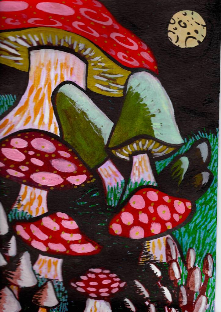 Even though I draw psychedelic mushrooms, I don’t eat them. My brain has always had a psychedelic mood without any drug use. Actually, it was a mistake to ever engage in alcoholic activities; especially considering my past with mental health problems.