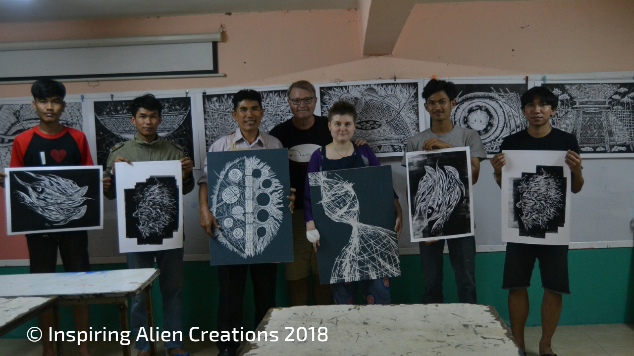THIS WORMHOLE SYMBOLISM IS THE THEME OF MY WORKING THAT I’VE DONE WITH PROFESSOR SURICHAI BY MAKING PRINTS – WE DOCUMENTED IT BY VIDEO AND PHOTOS. I’VE REALLY MISSED PRINT MAKING SO THIS WAS INDEED A PERFECT OPPORTUNITY TO GET BACK INTO IT.